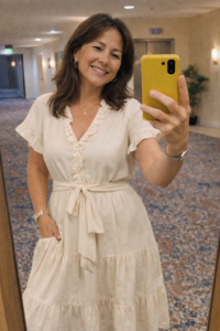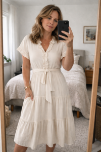 Es un vestido bonito y muy cómodo, perfecto para llevar a diario o en ocasiones más tranquilas. La tela es ligera y el diseño sencillo pero elegante, aunque en mi caso esperaba que la caída fuera un poco más ajustada en la cintura. Aun así, se ve bien puesto y combina fácilmente con distintos accesorios. En general, estoy satisfecha con la compra